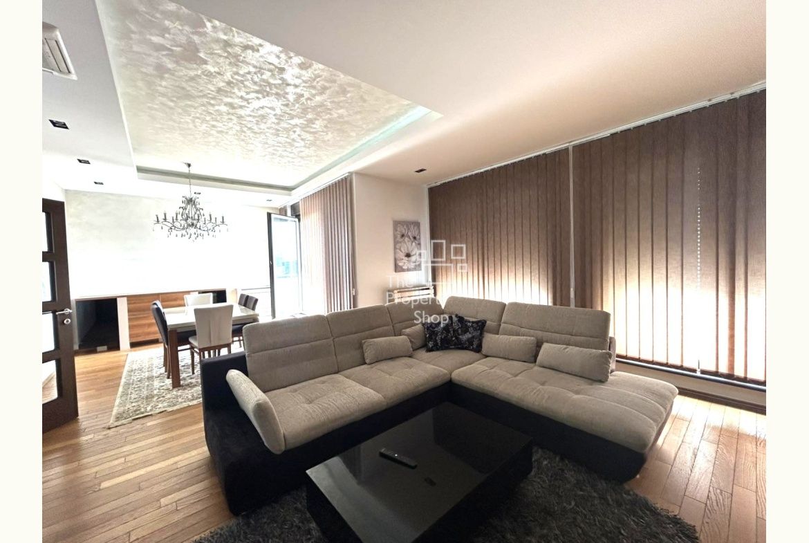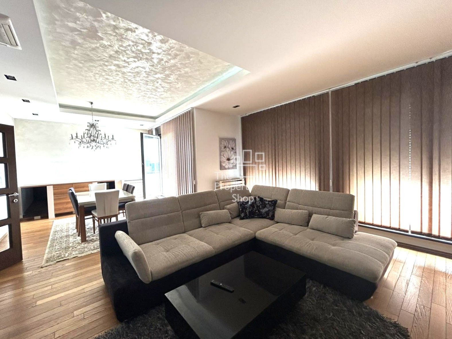 Dedinje, luxurious, furnished apartment, 117(127)sqm, living room & three bedrooms, two bathrooms, two terraces, two garage spaces. Video intercom, air conditioning, gas heating. Swimming pool in the backyard.